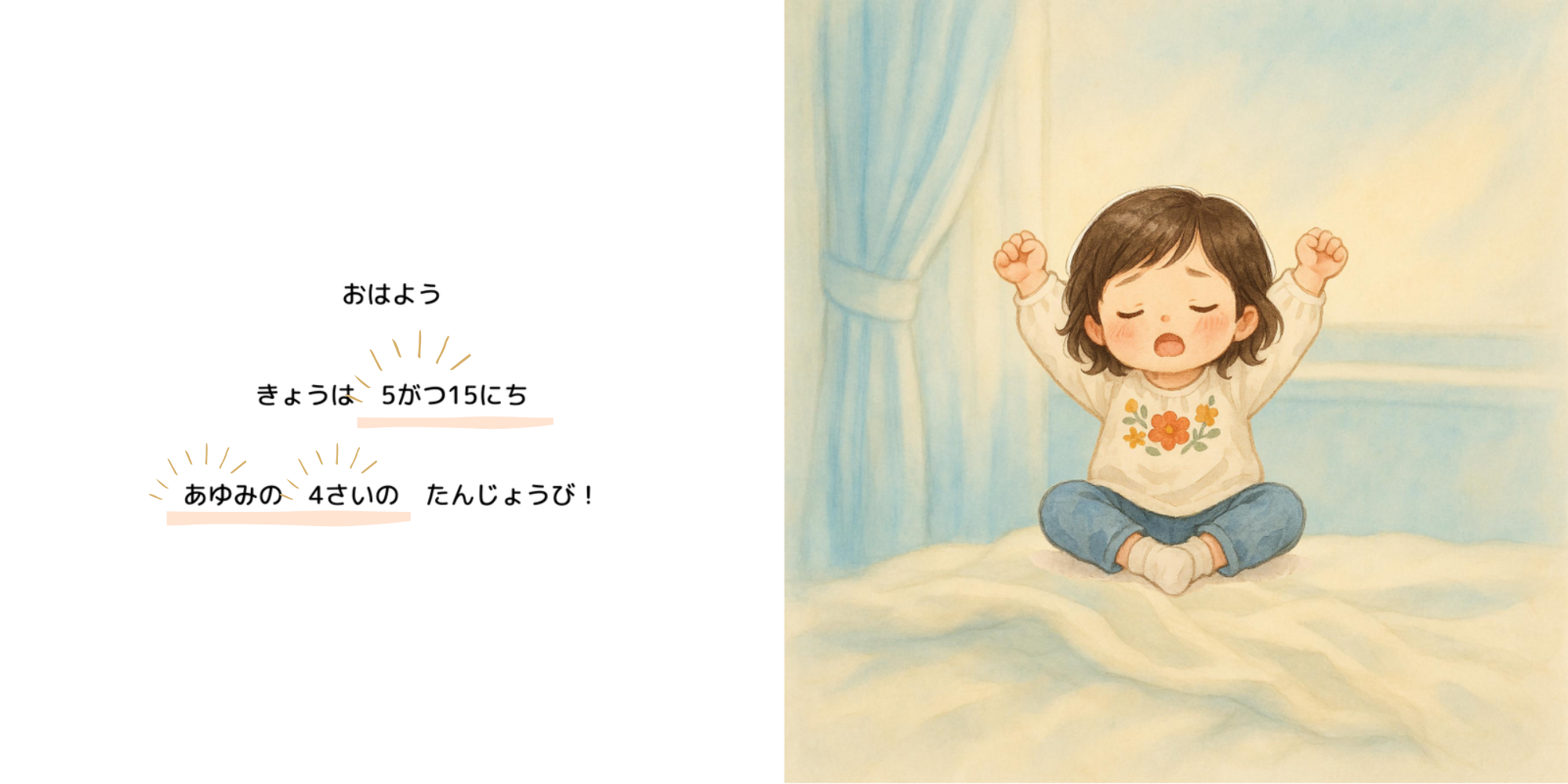 名前や年齢、誕生日が本文に登場するので、誕生日プレゼントにピッタリです