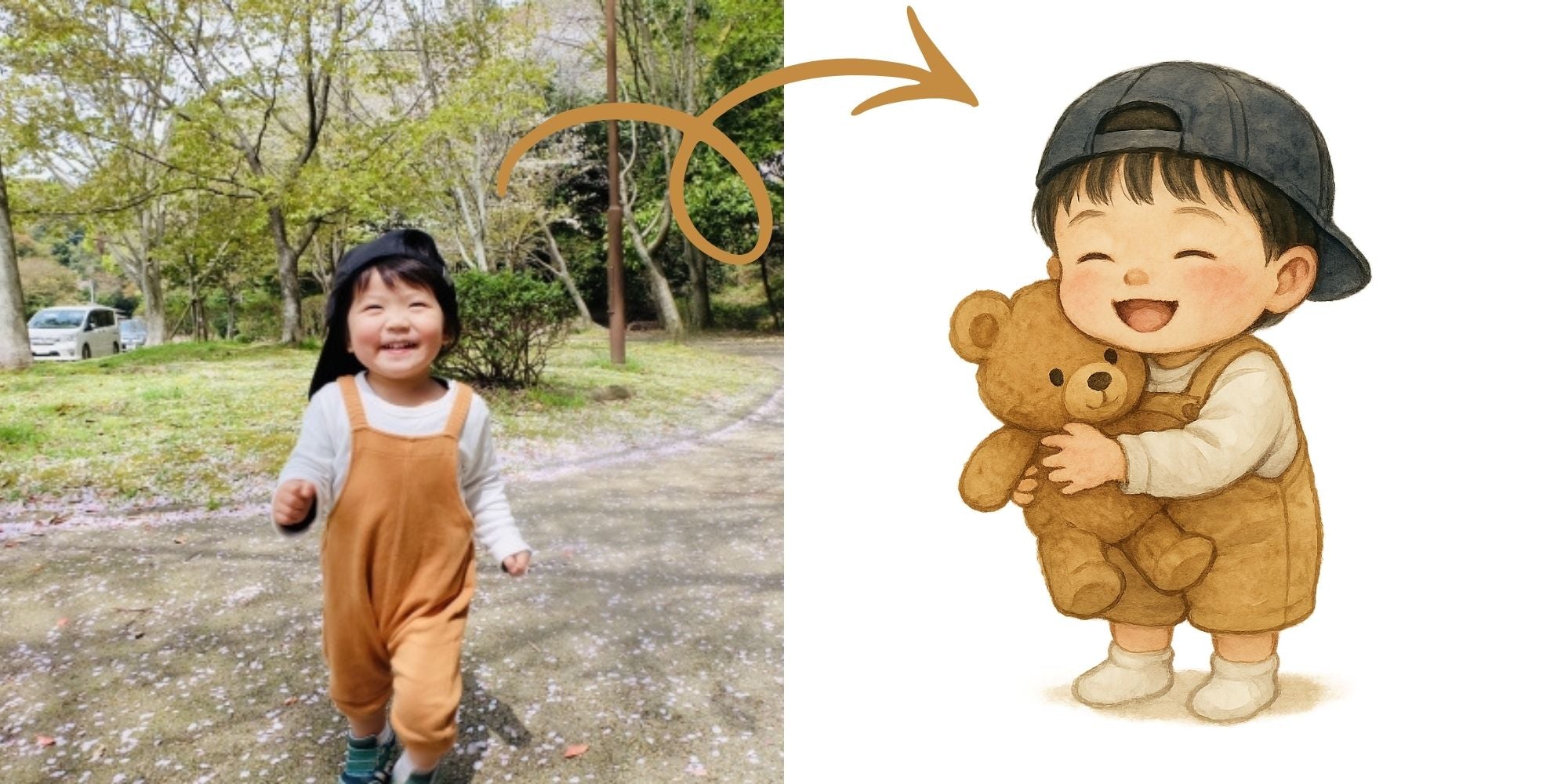 お子さまの写真をアップロードするだけで、約1分で可愛いキャラクターに変身